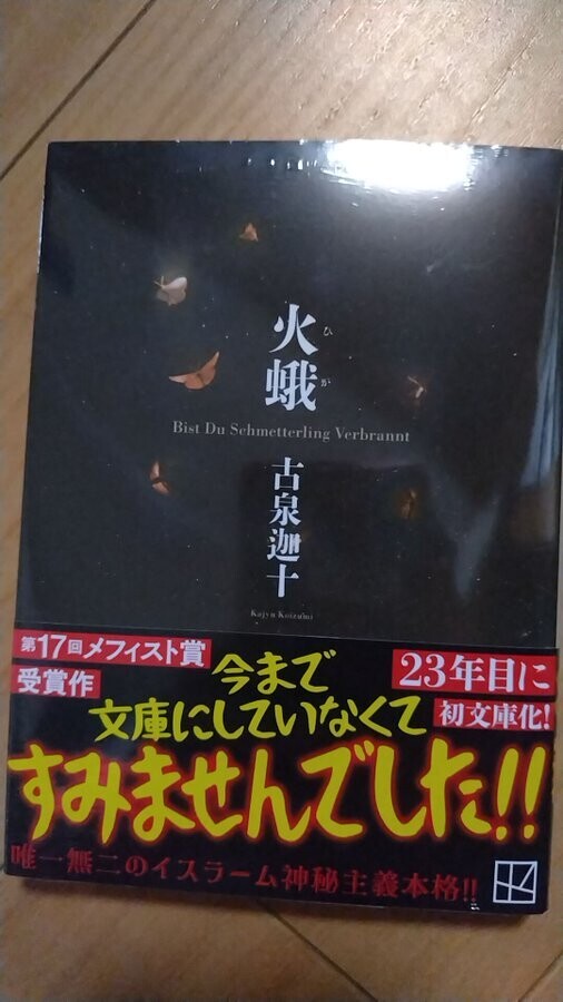2023-05-28 宮で火蛾 買い物 最寄りの宮脇書店にて。 古泉迦十『火蛾 (講談社文庫)』 古泉迦十『火蛾』!フォロワーさんもみんな好評しててgetしてたので!そして話題のダサい帯!まぁスタイリッシュではないけど、分かりやすいやん。